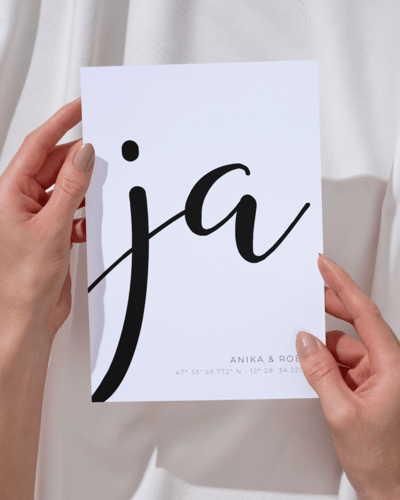 Durch eure Angaben wird das Poster zu einem ganz besonderen, persönlichen Lieblingsstück – mit den Koordinaten des Trauorts und einer Illustration ganz nach deinen Wünschen.